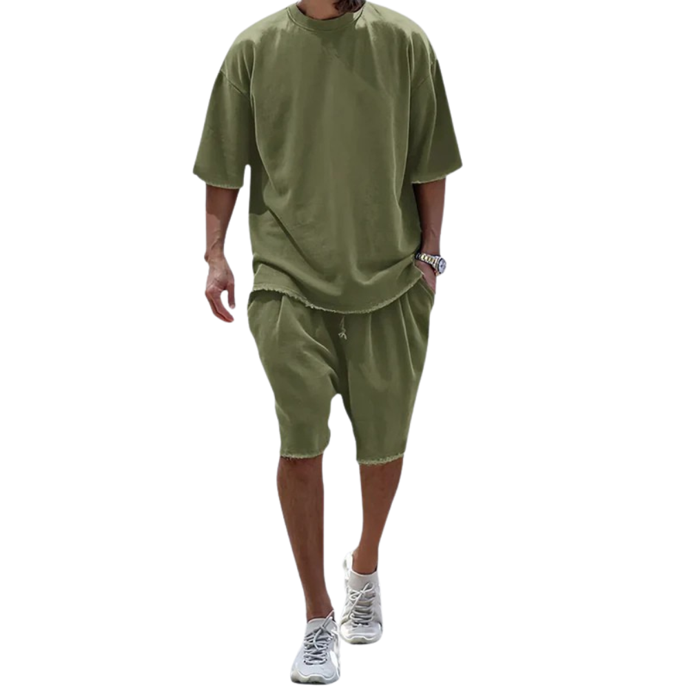 Siente la textura suave y disfruta de la caída informal de este conjunto. El tacto de la tela brinda comodidad y elegancia instantáneas, perfectas para cualquier ocasión.